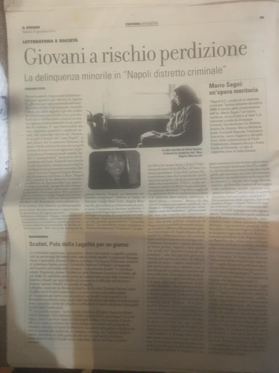 Al di là della camorra Napoli sta vivendo una situazione drammatica. Dal 2004 al 2009 le condizioni socioculturali della città sono peggiorate. La pandemia ha fatto il resto....Dal 2021 è davvero difficile credere in "nuove ripartenze". I minori in particolare non sono più ragazzi inesperti, impulsivi e condizionabili. Spesso ci troviamo di fronte a giovani che hanno già capacità criminali degne di soggetti adulti. E l'assenza di un'occupazione stabile e di prospettive di crescita economica non sembra lasciare spiragli alla speranza di un cambiamento. Ma se Napoli può rappresentare un distretto criminale nel quale collaudare nuove forme di contrasto alla criminalità minorile e alla devianza giovanile e sperimentare nuovi percorsi formativi e culturali, raccogliendo input dall'Europa, è l'analisi sulla famiglia che conduce a conclusioni allarmanti. Il "criminal profiling" sembra scaturire dalla mancanza di una corretta educazione alla legalità e rispetto del prossimo; dalla diffusione di modelli sociali che inducono ad inseguire i facili guadagni. E ad affermarlo sono proprio i genitori. Si va ben oltre la criminalità comune, ben oltre la camorra e la mafia.